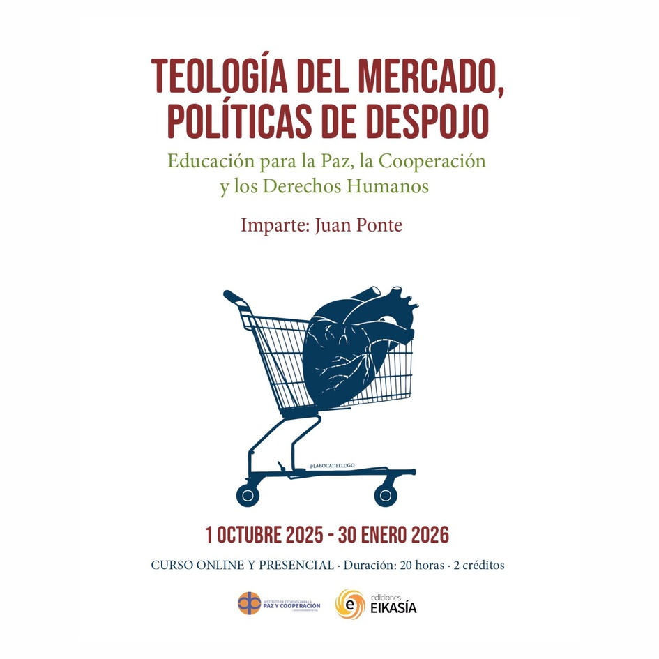 - CURSO: TEOLOGÍA DEL MERCADO, POLÍTICAS DE DESPOJOINFORMACIÓN GENERAL FECHA: Del 1 de Octubre de 2025 al 30 de Enero de 2026.MODALIDAD: Online y presencial.DURACIÓN: 20 horas,… Lee más: CURSO: TEOLOGÍA DEL MERCADO, POLÍTICAS DE DESPOJO