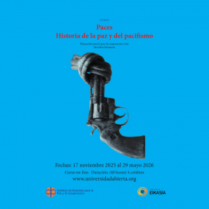 - CURSO Paces: Historia de la paz y del pacifismoEducación para la paz, la cooperación y losderechos humanos Inicio: 17 noviembre 2025Fecha de finalización: 29 mayo 2026.Modalidad: 100% online-semipresencialDuración:… Lee más: CURSO Paces: Historia de la paz y del pacifismo